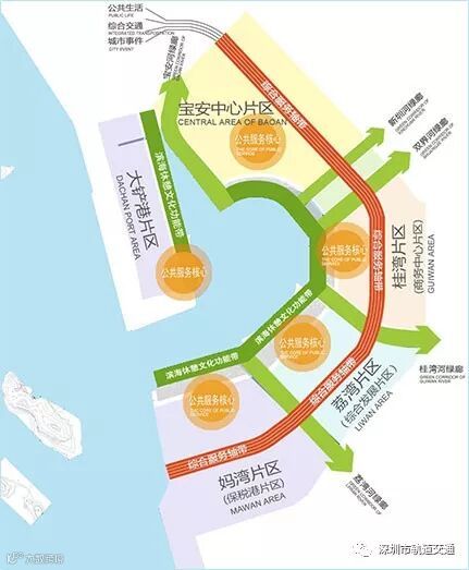 前海片区与市中心区等各组团之间的