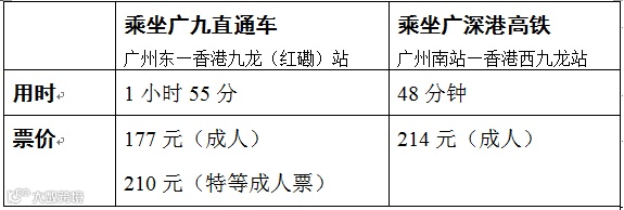 香港西九龙总站—广州南站:260港元(约合人民币214元)