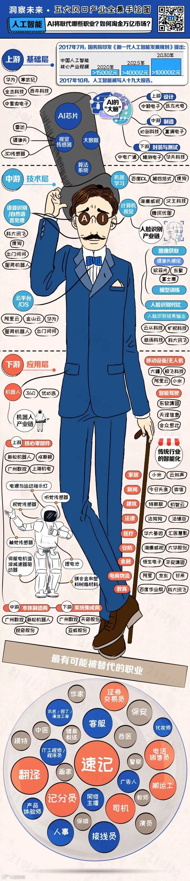 一图看懂AI产业链机会!它将取代哪些职业?如何淘金万亿市场?