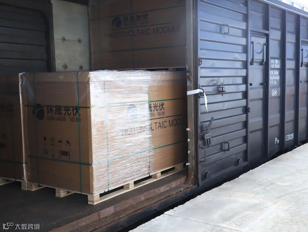 为了保障组件安全、准时运抵项目地,运输方式主要采取铁路运输,首批发货产品为50MW N型G12R-68P叠瓦组件,后续环晟将持续进行高质量的产品供应,并计划累计提供达200MW组件,全力支持项目建成并网。