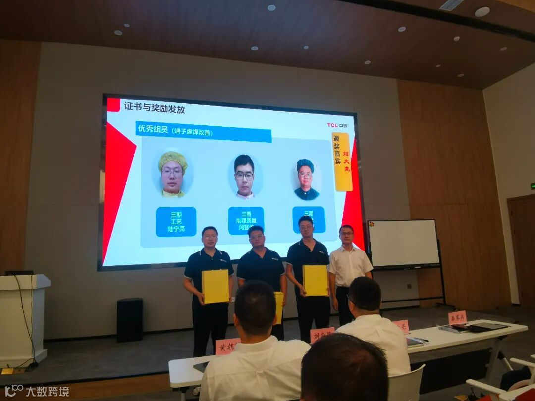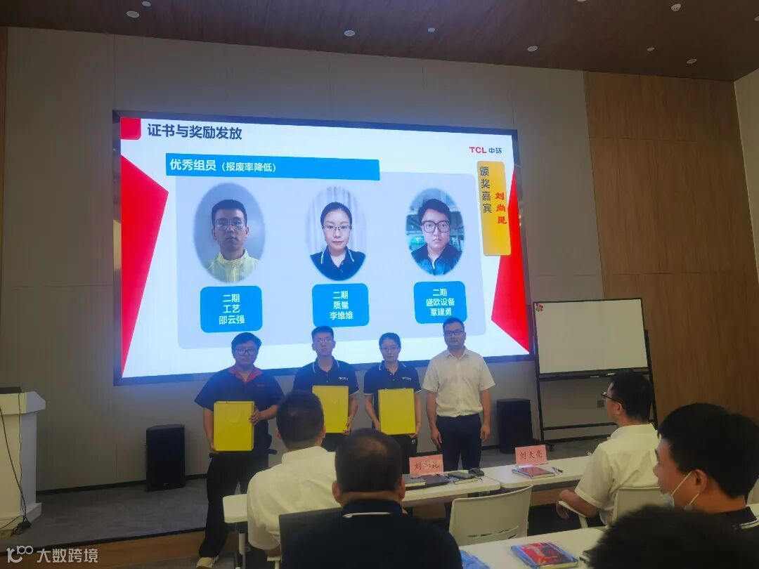 在项目活动的成果展示后,对在项目过程中评选出的”持续改善积极分子”及“优秀组员“进行了表彰,并邀请黄朝麟总、秦赛兵总、刘尚昆总、刘大亮总对相应人员进行颁奖,肯定他们在改善活动中的优秀表现。