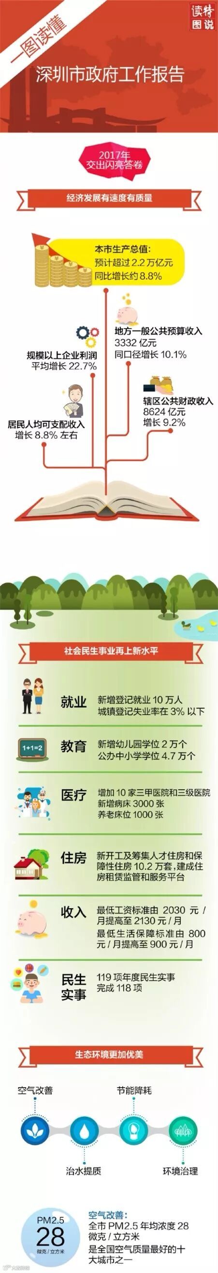 经济发展有速度有质量的同时,2017年深圳社会民生事业再上新水平、生态环境更加优美、城市软实力影响力又有新提升。