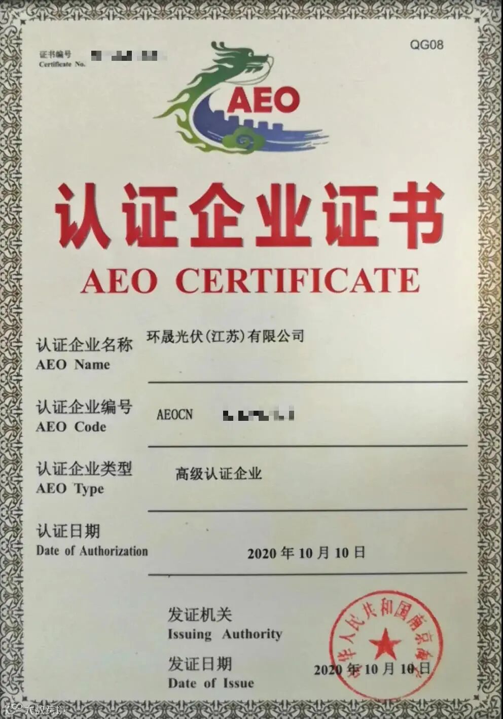 2020年11月5日,环晟光伏升级为海关AEO高级认证企业!意味着环晟光伏拥有了一块在全球40多个国家(地区)快速通关的“金字招牌”,对公司战略的深化发展具有重要意义!