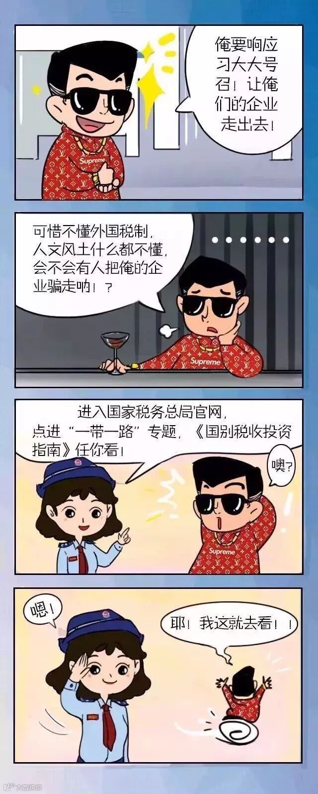 截至2017年上半年,国家税务总局在官网先后发布了59份《国别投资税收指南》。指南内容包括东道国整体营商环境、主体税种、征管制度、双边税收协定或安排,让企业快速熟悉境外投资目的地的基本情况。
