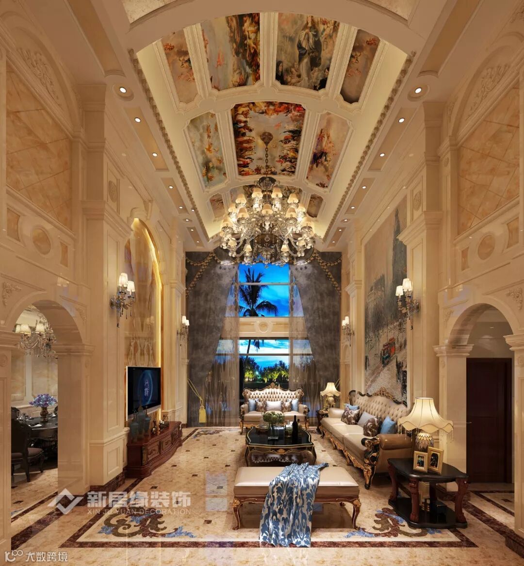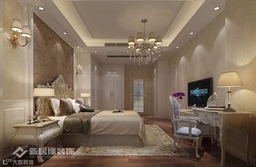 本案奢华欧式设计,将宏伟生动热情奔放和纤巧华丽都融入家居空间,把雍容优雅,带进人们的生活。奢华的软装、精致的雕花线条、硕大的水晶吊灯,整个风格豪华、富丽,充满强烈的动感效果,奢华欧式享受品质生活。