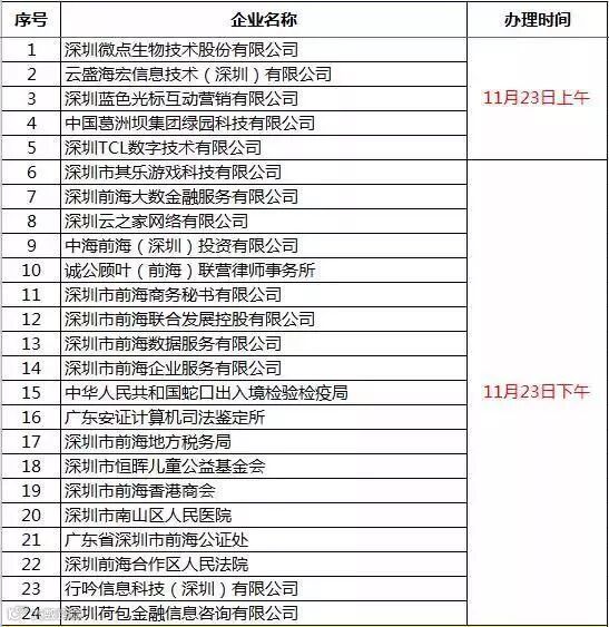 前海人才公寓(龙海家园)2017年第一批承租单位办理入住时间为2017年11月18日-2017年11月24日(本周六--下周五),各承租单位具体办理时间如下: