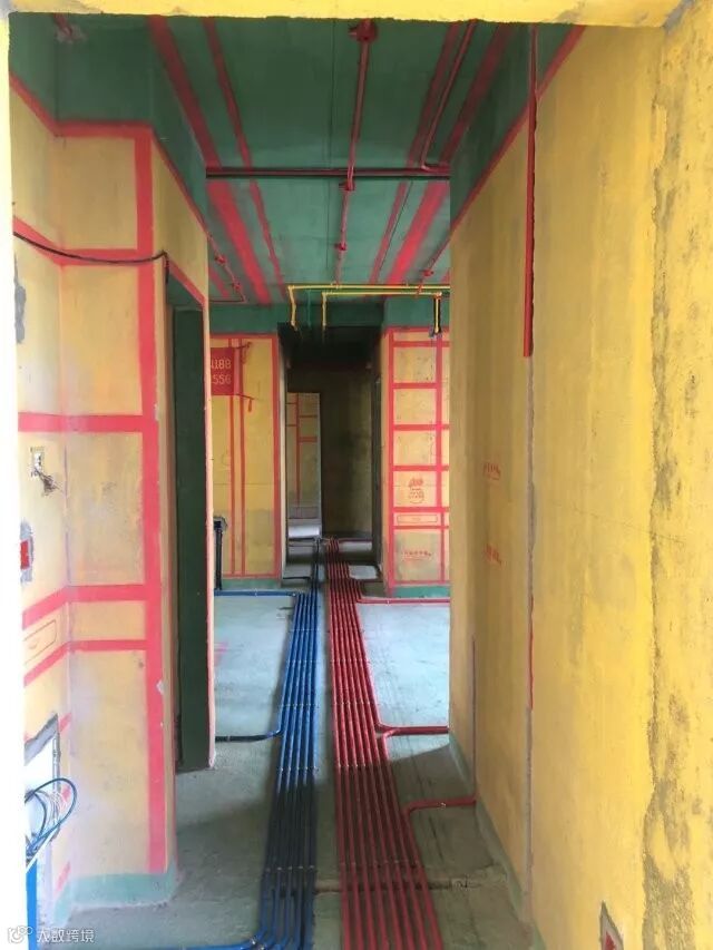 严格遵循“水天电地”“横平竖直”施工工艺,水电分离,减少地面管道密度,避免地面铺砖空鼓;管道布排井然有序,维护便捷。安装在天花上的水管,即使漏水也能发现及时,检修方便施工成本较低,也不会影响到邻居。