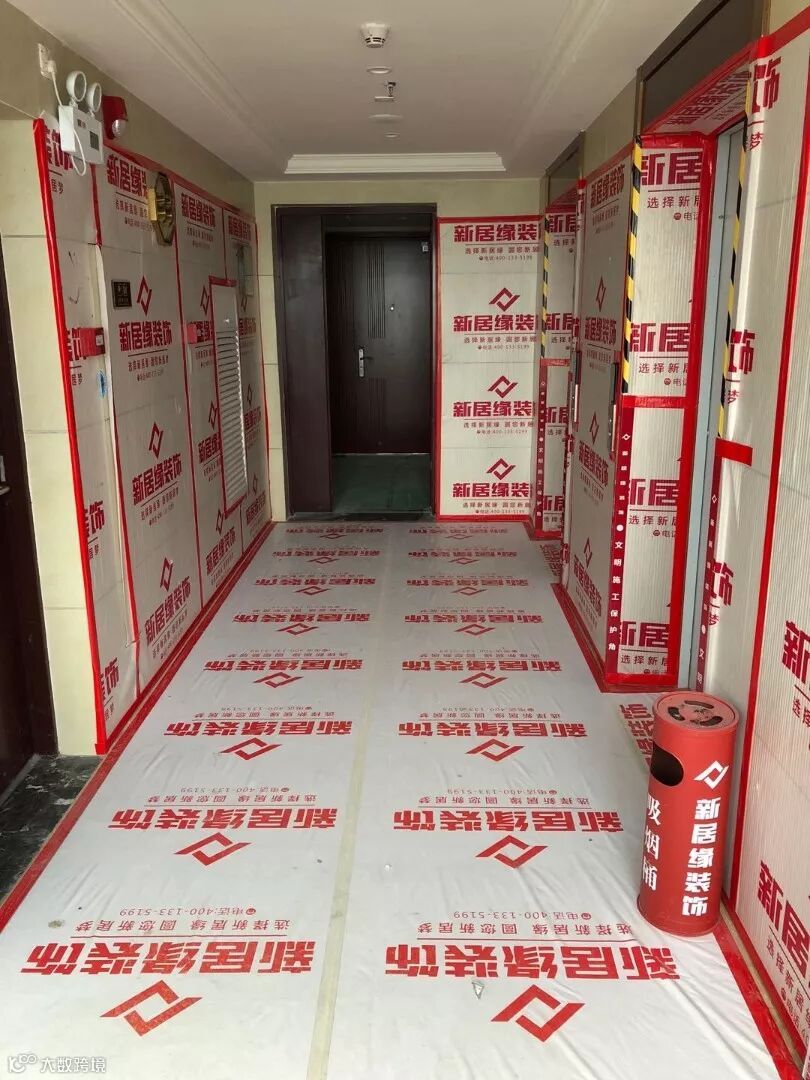 施工前对门窗、玻璃、护栏、户外通道、电梯、地砖、垃圾桶等成品或半成品采取新居缘专用保护膜保护,它们能起到防止摩损地面、墙面的保护作用,并有效对施工灰尘进行隔离,使工地现场干净整洁;防止喷漆、刷墙时有色物质入侵地板或瓷砖,避免施工时对原件造成二次污染和损害,保持美观整洁。