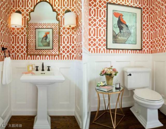 西瓜红的壁纸和白色搭配,连去洗手间心情都会很好吧。