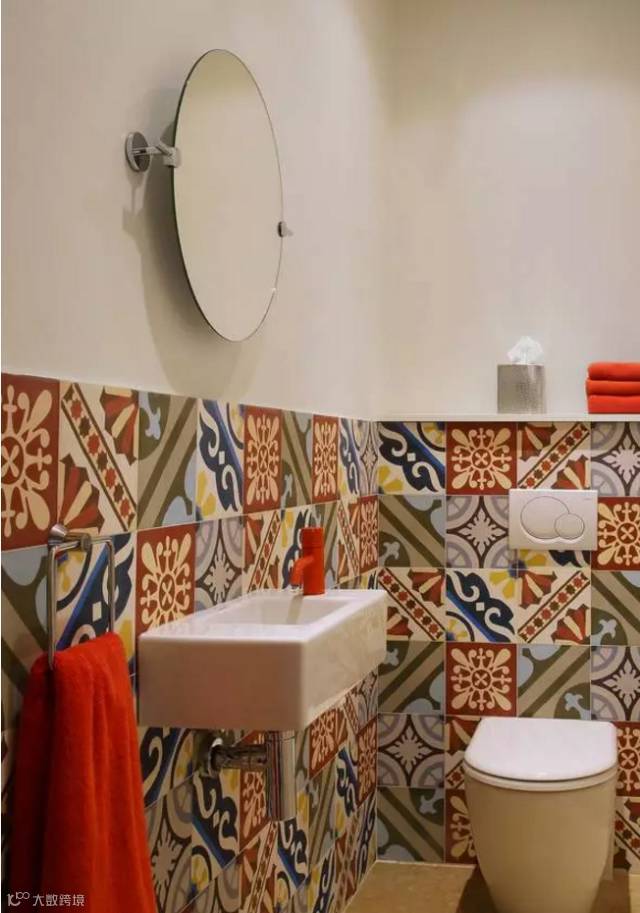 瓷砖全贴和半贴的效果完全不一样,半贴的话颜色可以尽量大胆一些。