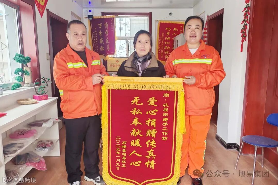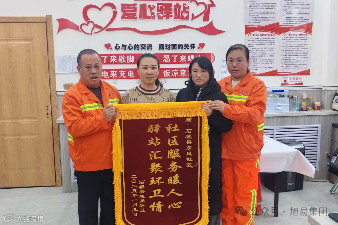 为了表达对这些爱心单位和门店的深深感激,旭易石楼环卫精心制作了锦旗。近日,送锦旗的工作人员满怀敬意地走进各个爱心单位。现场气氛温馨而感人,当环卫人员将锦旗递到爱心单位代表手中时,双方的眼中都满含着真挚的情感。锦旗上一句句饱含深情的话语,是对爱心单位善举的高度认可,“医扶大爱播撒阳光、德医双馨情系环卫”,这是对石楼兴楼医院免费体检善举的赞誉;“爱心捐赠传真情,无私奉献暖人心”,则是对所有爱心捐赠者的由衷感谢;“社区服务暖人心,驿站汇聚环卫情”,体现了东风社区爱心驿站的贴心服务;“情系环卫,暖心服务,感谢灵泉邮政局大力支持”,表达了对灵泉镇邮政局爱心驿站的感激;“爱心驿站情系群众,尽职尽责为民服务”,是对各爱心驿站的肯定;“关爱环卫送温暖,春风细雨暖心怀”,则是对所有关心环卫工人的爱心人士最诚挚的谢意。