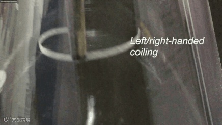 张利东在接受《中国科学报》采访时表示,该智能薄膜的实验过程也很有趣。当PVDF膜表面微孔道排列和薄膜的长轴夹角保持在30°或60°时,薄膜受到丙酮分子刺激产生右手性的缠绕运动;反之,微孔道排列和薄膜的长轴夹角保持在-30°或-60°时,薄膜则产生左手性的缠绕形变;当这种夹角保持在90°时,双层膜吸收丙酮分子而产生向着PVA层的定向弯曲形变。