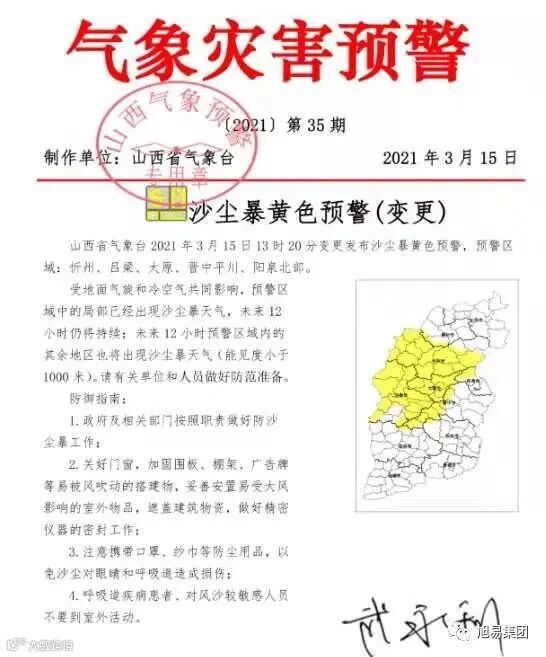 面对大自然的强敌,我们选择主动出击,此次沙尘暴的战争定会持久的交锋,但是旭易人绝不退缩,我们有信心可以战胜“黄天”,还大家一个明媚的春天!