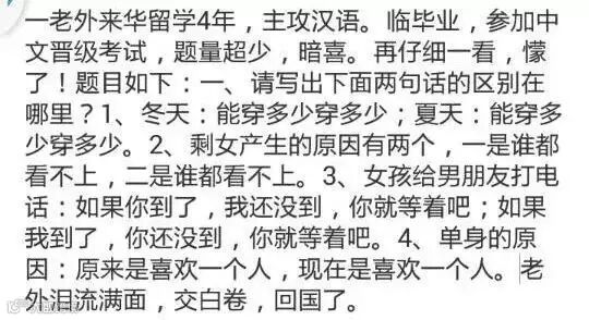 还有网友给老外们出的四级考试题目