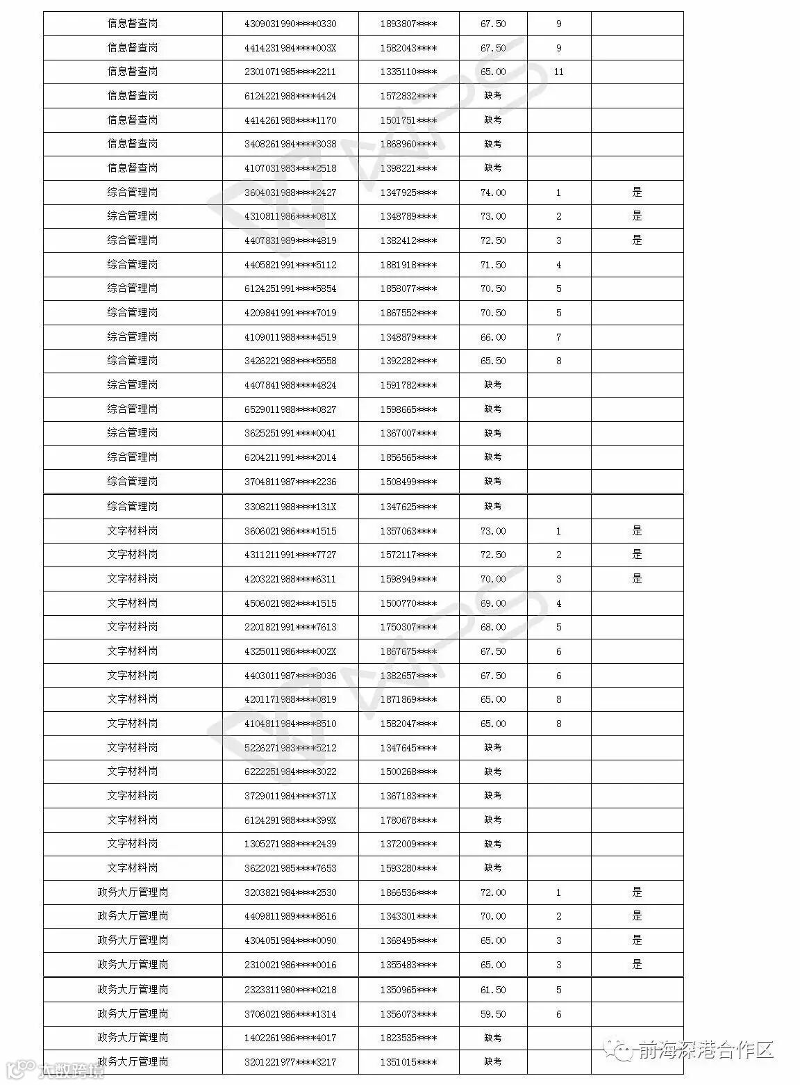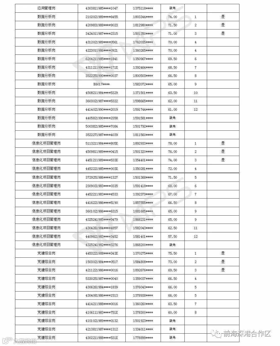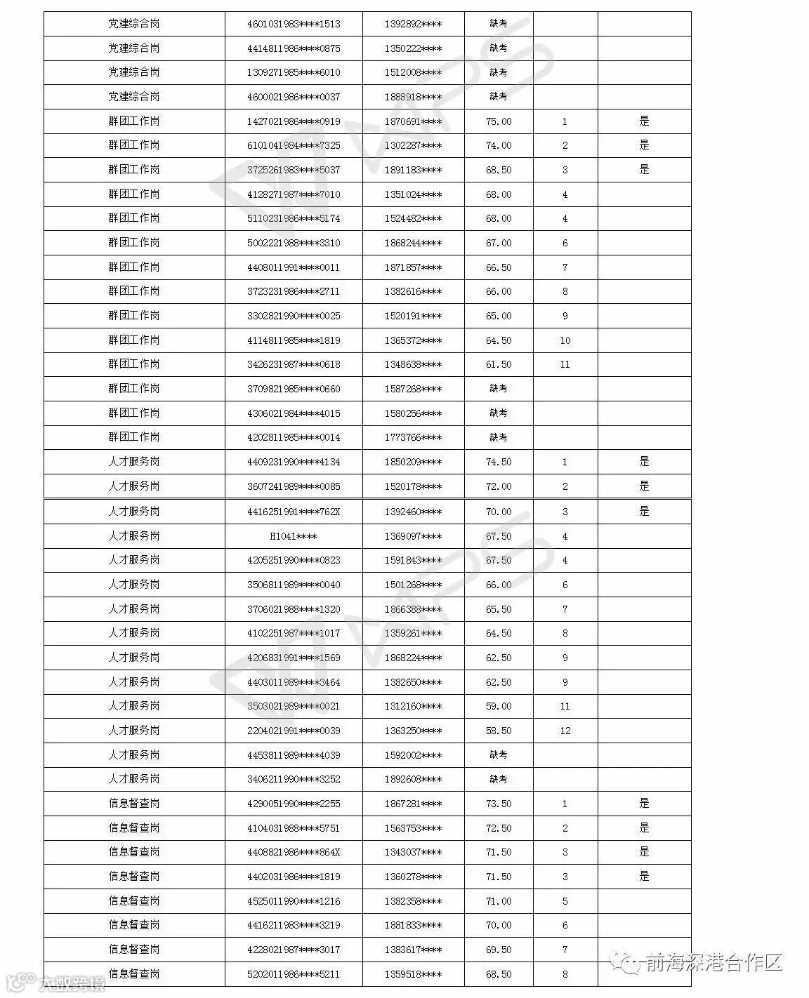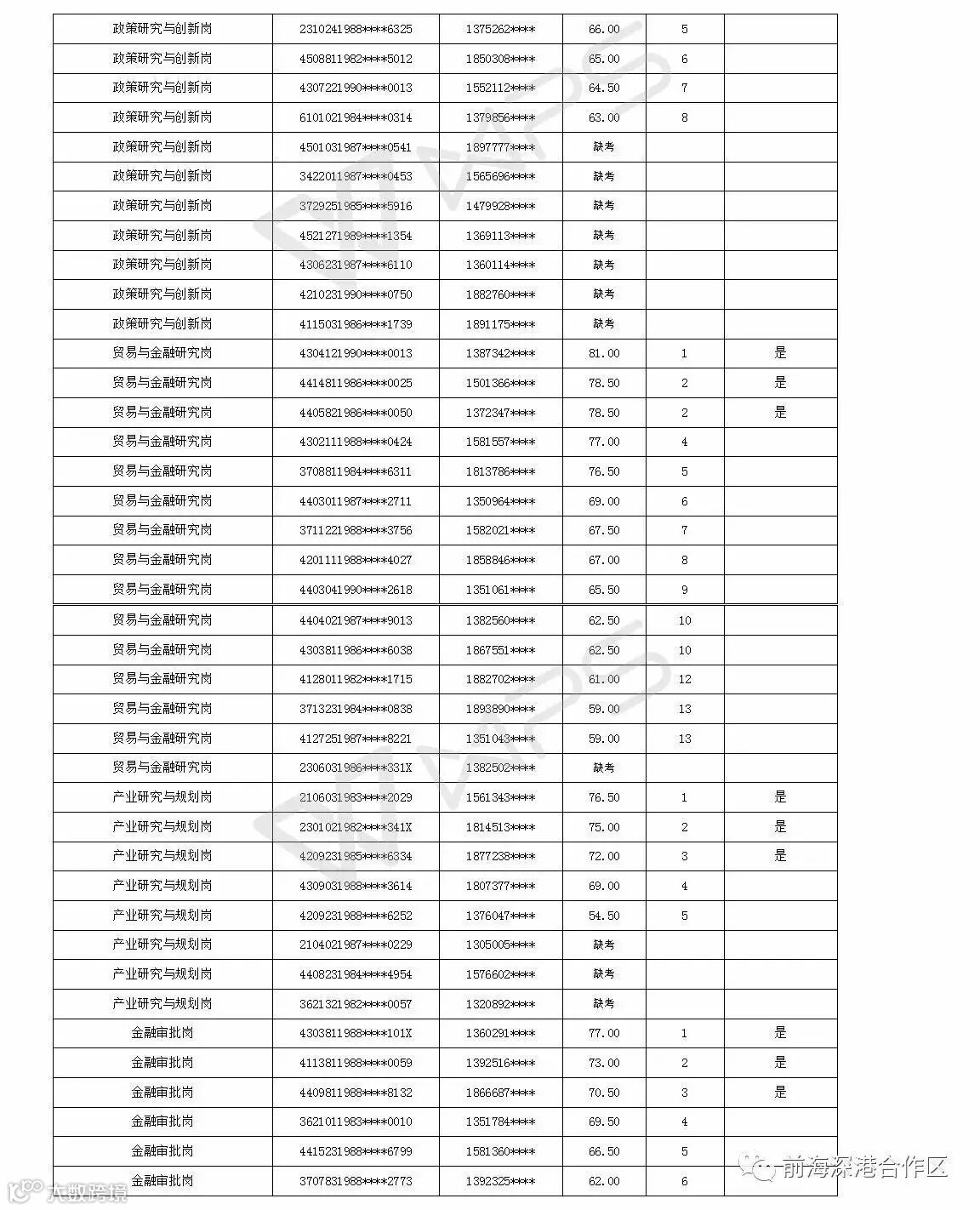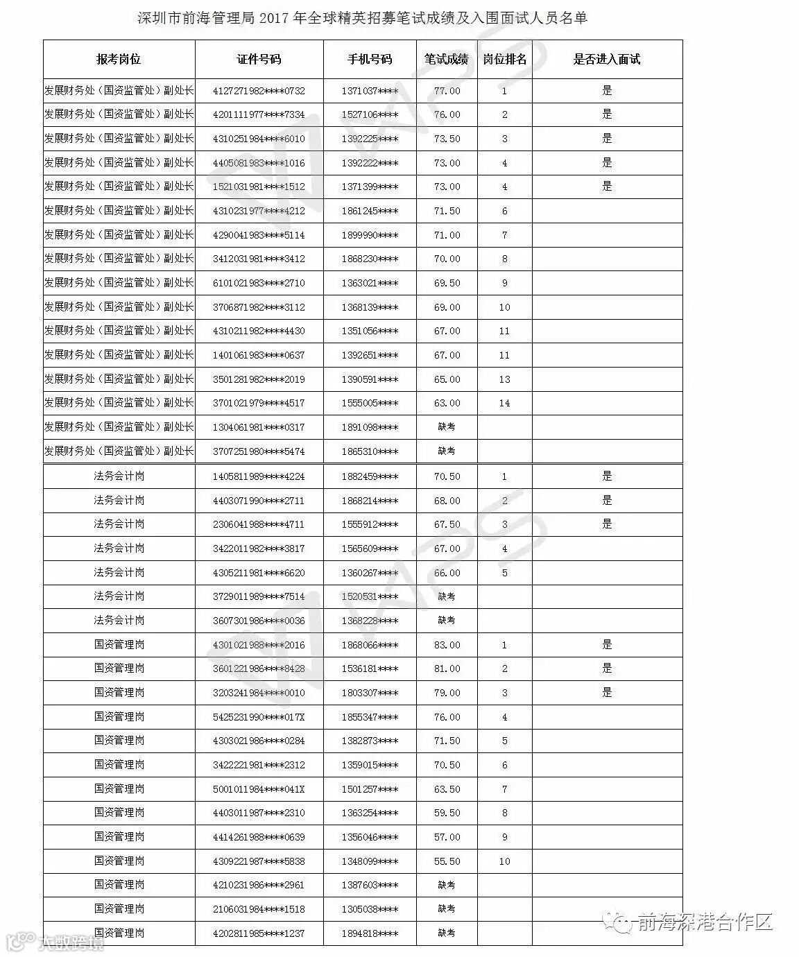 根据《前海管理局2017年全球精英招募公告》及招募计划安排,现将笔试成绩及入围面试人员名单予以公布。