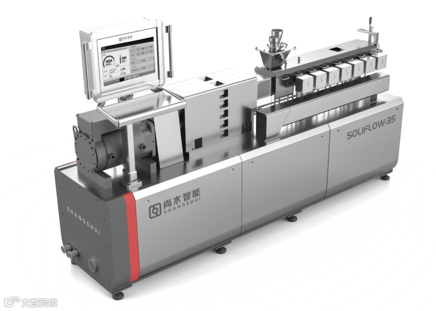 其中,为实现粉料的均匀混合与包覆,尚水智能推出的双传动包覆机等设备可实现低温高线速混合;采用双螺杆等对材料进行剪切的双螺杆挤出机可均匀稳定控制PTFE纤维化;集多种功能于一体的多级辊压覆膜一体机可实现自支撑膜成型收卷、单面或双面覆膜以及双面极片压实等功能。
