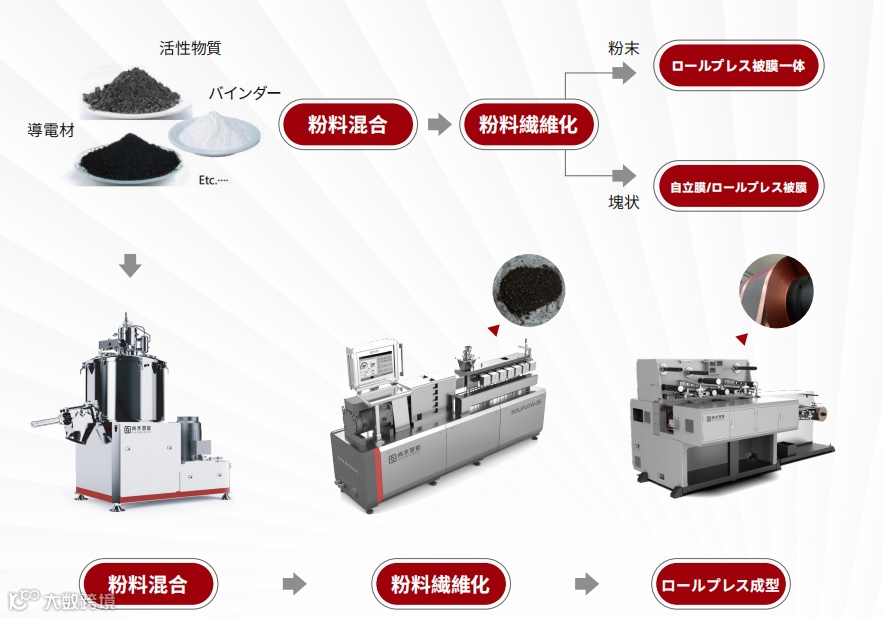 Among them, to achieve uniform mixing and coating of powders, equipment such as the Dual-drive Coating Machine launched by Shangshui enables low-temperature and high-speed mixing. The Twin-screw Extruder, which utilizes twin-screw mechanisms and other materials for shearing, ensures uniform and stable control of PTFE fibrillation. Additionally, the Multi-stage Calendering & Laminating Integrated Machine, which integrates multiple functions, facilitates self-supporting film forming and winding, single-sided or double-sided laminating, and double-sided electrode compaction.