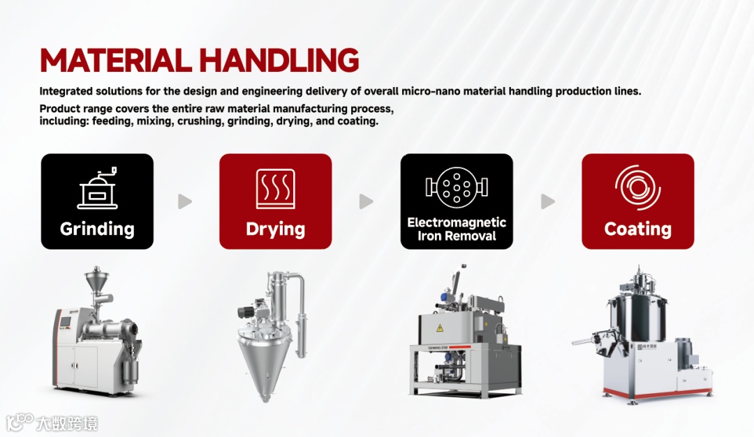 During the exhibition, Shangshui integrated solutions for material handling equipment and battery cell production equipment attracted widespread attention from clients and successfully established professional connections within the industry. In the field of material handling equipment, we provide comprehensive solutions for the design and engineering delivery of overall micro-nano material handing production lines. Our product portfolio covers the entire range of raw material manufacturing process, including: feeding, mixing, crushing, grinding, drying, coating, and more.