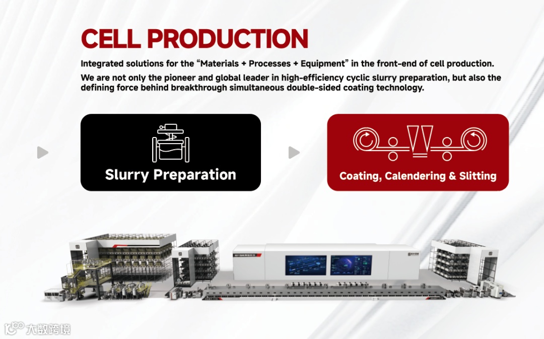 针对电芯生产装备,我们的整体解决方案配备有电芯生产前段“材料+工艺+装备”。在制浆领域,我们首创的 “循环式高效制浆系统”,开创了全新的工艺路线,改善了预混合效果差、效率低、能耗高、一致性差、占地空间大等难题。历经多轮技术迭代,我们的制浆技术已成为新能源电池制浆的主流工艺之一,并在中国、美国、欧洲、日本、韩国等国家和地区获得专利授权。