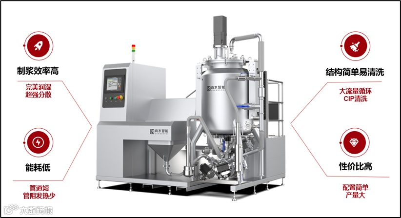 尚水智能针对不同分散阶段,已成功开发多系列分散设备,有效地解决了部分工艺难题。在分散过程中,尚水智能研发的循环分散机等液体分散类设备,加强了分散强度;循环制浆机、COMODO制浆机等固液混合类设备,改善了润湿及分散过程;砂磨机类设备能够研磨更加精细的颗粒;组合式分散技术则通过工艺优化、设备组合等提高了分散效率和性能。