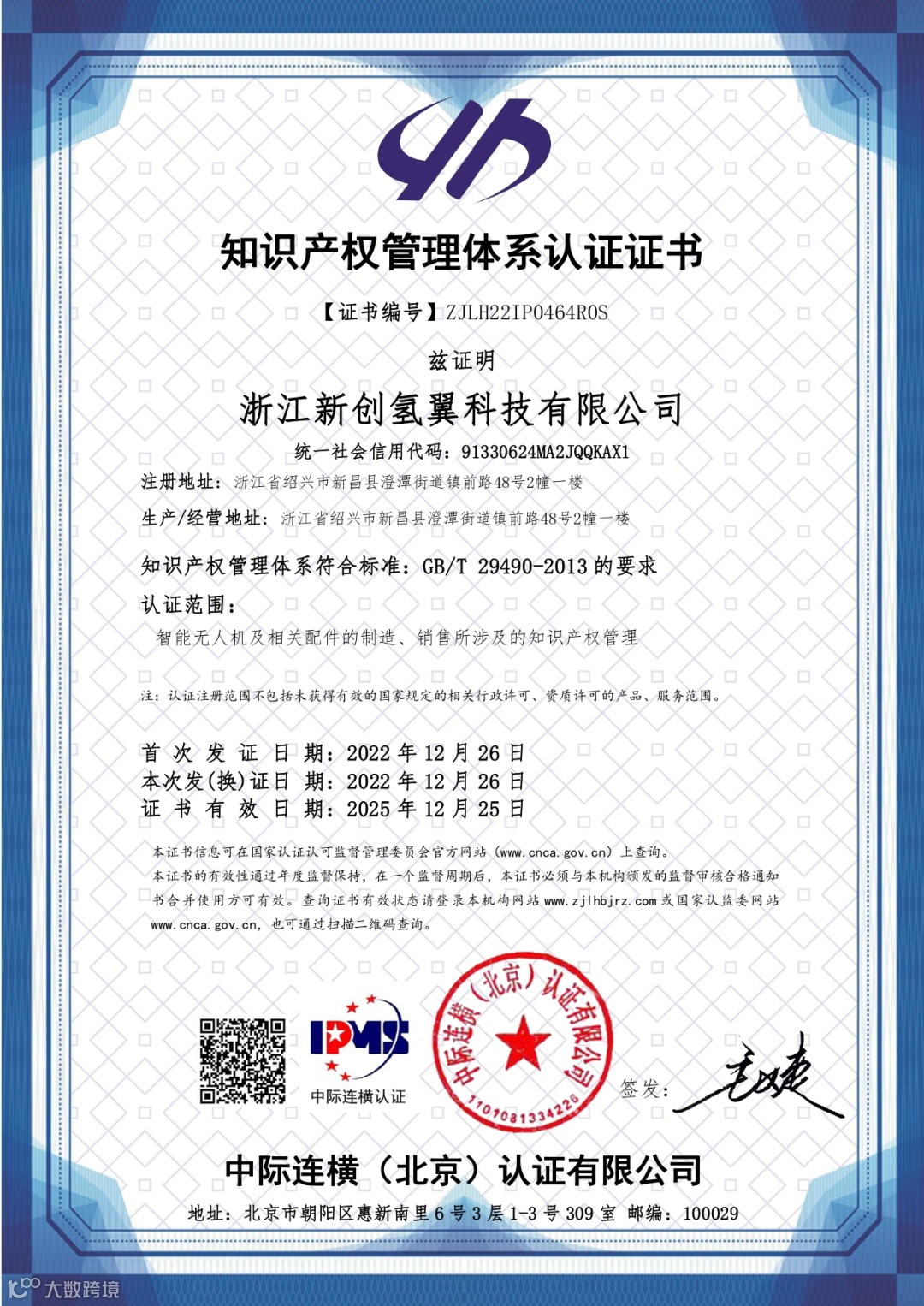 氢鹏科技近日,浙江新创氢翼科技有限公司顺利通过知识产权管理体系认证,标志着新创氢翼的知识产权管理工作又上一个新台阶,公司在科技创新、技术应用转化以及知识产权规范化管理等方面走在行业前列。此次公司顺利通过知识产权管理体系认证更是相关管理单位对新创氢翼知识产权工作成效的充分肯定和认可。