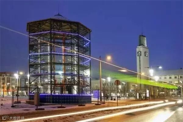 捷克赫拉德茨-克拉洛韦的一个地铁站附近建造的全自动自行车停车塔,采用玻璃墙结构,共有7层,可存放117辆自行车。用户只需借助一台售票机便可完成存取车全过程。