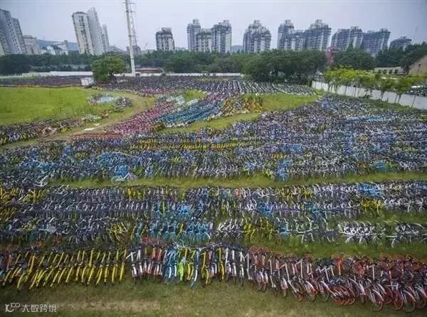 据报道,截止2017年6月,杭州城管在主城区范围内暂扣的违规共享单车数量已超过2万余辆,大部分被弃之荒野,场面极其壮观。