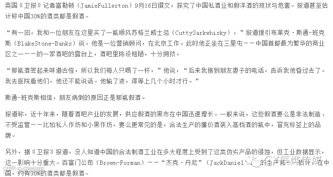 在中国葡萄酒市场,假酒问题愈演愈烈,这主要是因为消费者对葡萄酒的认知程度不高,有些人购买所谓的名酒只为作秀。因此,假酒在中国不容易被察觉。
