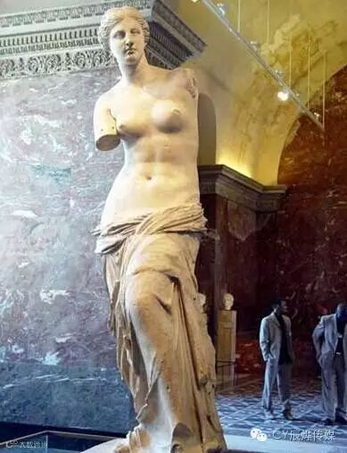 这位有点残缺的爱与美的女神也是熟悉不过的面孔了。1820年出土于一个叫米罗的岛上的这座维纳斯雕像,原本应该是完好的,不仅有双臂,还戴有首饰,并且绘有色彩。然而,如今你只能看到女神的这幅容貌了。尽管如此,女神依然是女神,她的整个脸的长度是鼻子的三倍,笔直的鼻梁与额头连成直线,也就是人们常说的“希腊式轮廓”,当然,希腊人实际上并没有这样的脸部轮廓!头与身体的比例也正好形成了1:3:5的黄金分割的完美比例。这种表现完美人体的手法也成为了后代艺术家创造人体美的准则。