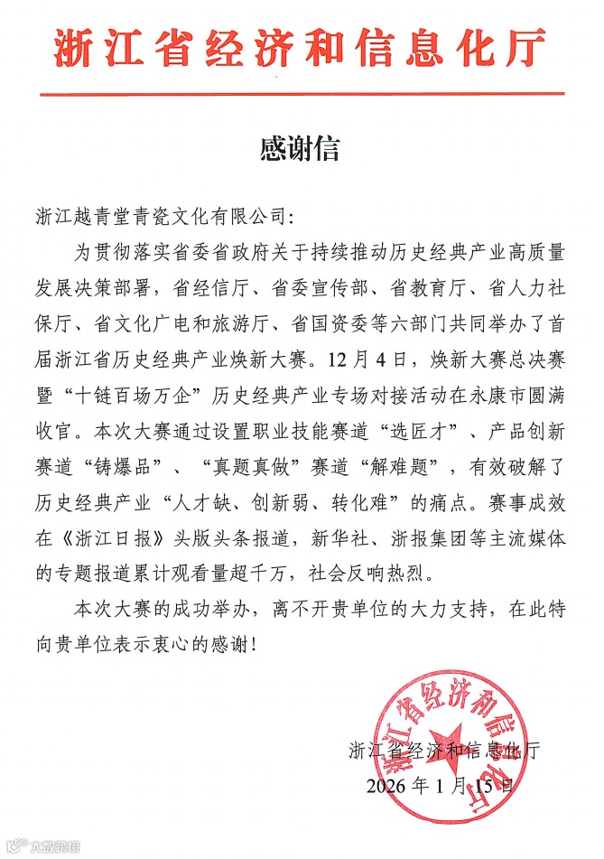 为贯彻落实省委省政府关于持续推动历史经典产业高质量发展决策部署,省经信厅、省委宣传部、省教育厅、省人力社保厅、省文化广电和旅游厅、省国资委等六部门共同举办了首届浙江省历史经典产业焕新大赛。12月4日,焕新大赛总决赛暨“十链百场万企”历史经典产业专场对接活动在永康市圆满收官。本次大赛通过设置职业技能赛道“选匠才”、产品创新赛道“铸爆品”、“真题真做”赛道“解难题”,有效破解了历史经典产业“人才缺、创新弱、转化难”的痛点。赛事成效在《浙江日报》头版头条报道,新华社、浙报集团等主流媒体的专题报道累计观看量超千万,社会反响热烈。