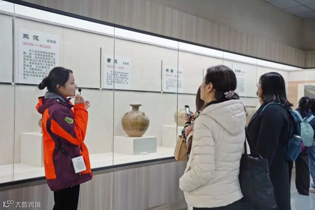 走出秀场,女神们来到了越窑非遗展厅。在这里,她们跟随讲解员的脚步,细细聆听越窑青瓷的历史故事,从原始瓷到秘色瓷,从越窑青瓷的辉煌再到没落。她们深入了解了越窑青瓷的历史渊源、制作工艺以及文化价值。