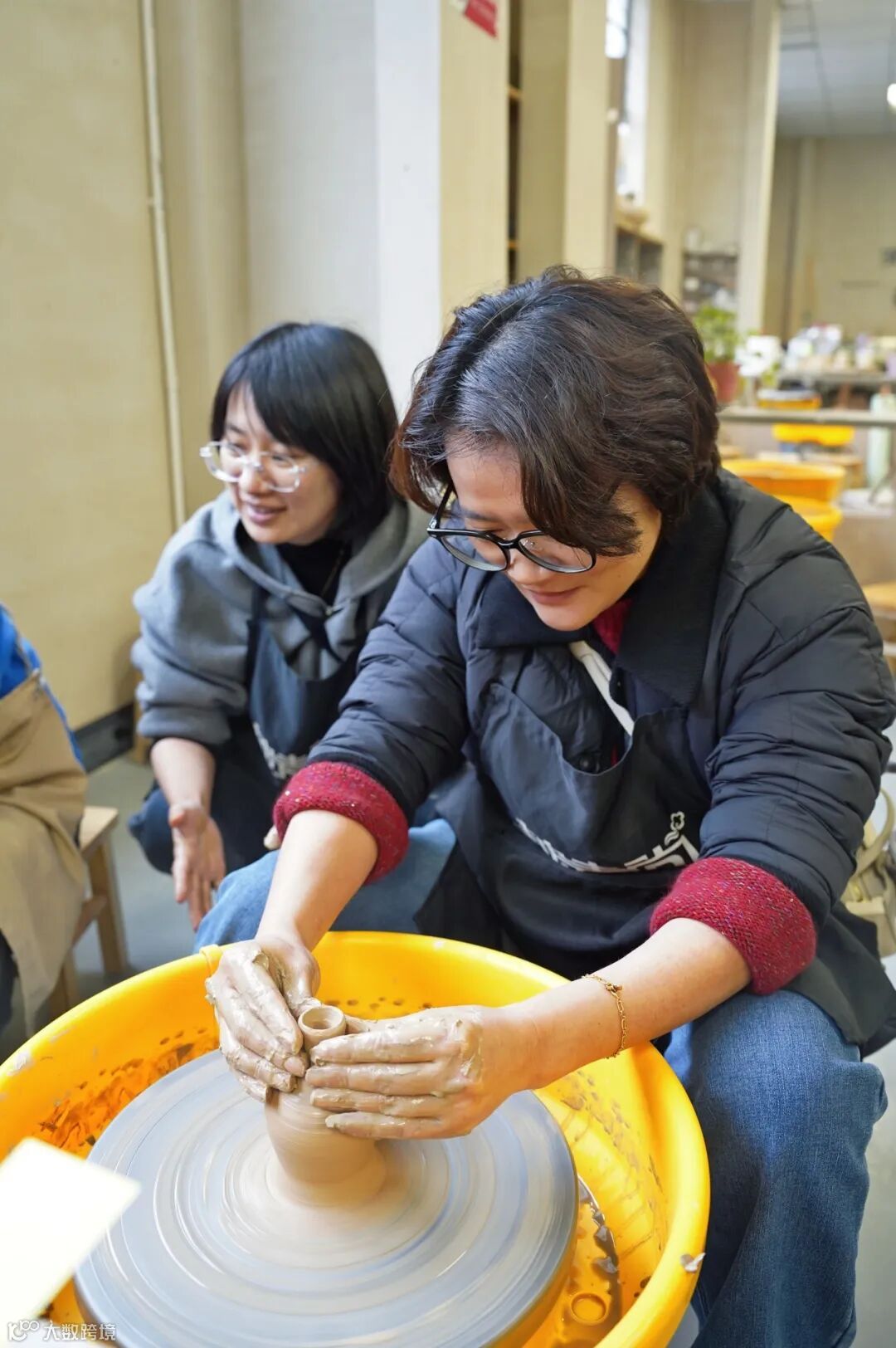 在拉坯教室,女神们化身“匠人”,在老师的指导下,亲手将一团团陶泥塑造成型,做出了自己喜欢的器物。之后又在讲解老师的带领下参观了观光工厂,更加直观的了解了从泥土到瓷器的一整个流程。