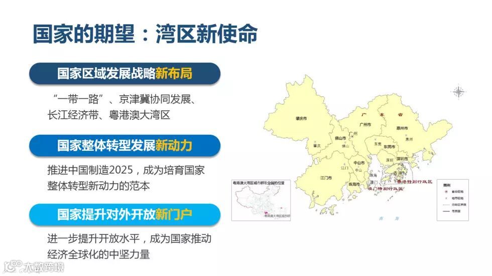 樊纲:最近国家提出两个建设概念,一个是“雄安新区”,一个就是“粤港澳大湾区”。“雄安新区”是“千年大计”,“粤港澳大湾区”也可说是“千年大计”。樊纲给了“粤港澳大湾区”一个牛的英文名:“china Great Area”