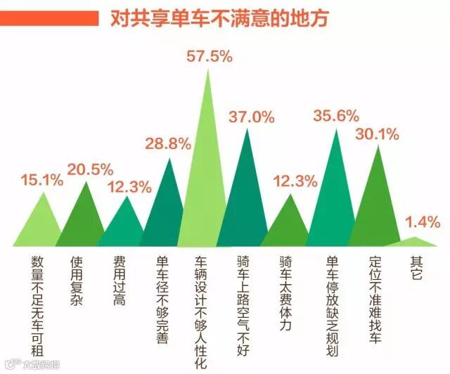 当然,共享单车属于创新的产品和服务,肯定暂时还不是十全十美的啦~大家在使用过程中也有不少的意见和建议。比如说,觉得车辆设计还不够人性化、骑车上路时的空气质量不好、共享单车停放缺乏规划,等等。