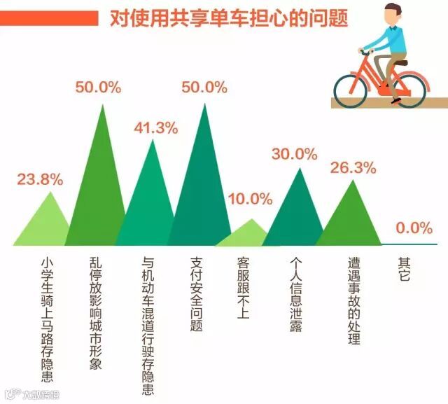 同时,大家也对单车乱停放影响城市形象、支付安全、单车与机动车混道行驶等问题表达了忧虑。