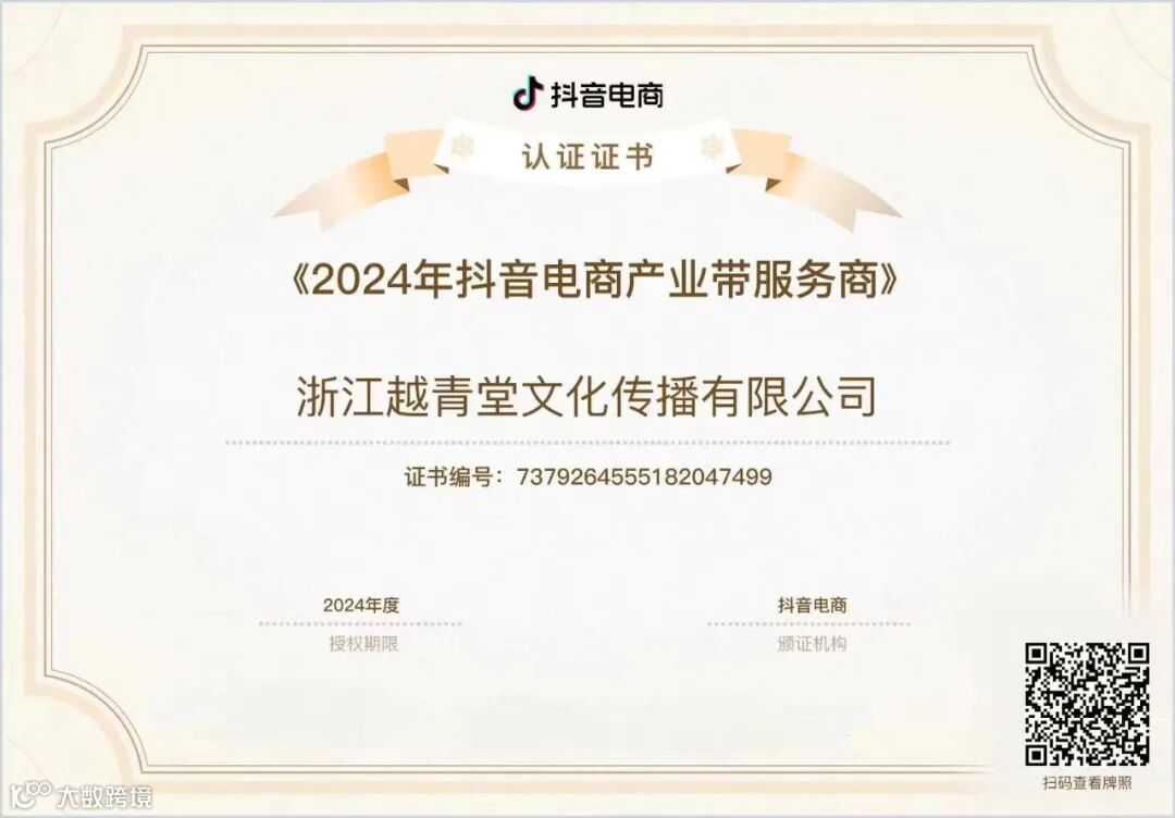 越青堂经过一年多的努力,历经抖音总部层层筛选和通关考核,终于取得了抖音官方“产业带服务商”的资质。作为抖音产业带服务商,我们肩负着重要职责,致力于整合平台资源,联动地方政府、行业协会、商家和达人,帮助企业和商家提升品牌知名度并拓展销售渠道。我们的目标是做好抖音官方和政府、地方行业、企业间的桥梁纽带,帮助商家完成线上平台从0到1的各项工作,提供全面的商家培训和落地方案执行,形成优质货源上翻、主播赋能、达人助力、提供就业等生态闭环。