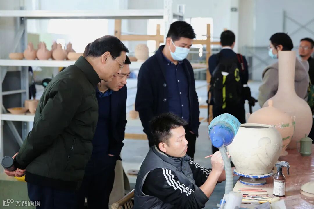 在观光工厂,市委宣传部副部长魏建东观摩雕刻师的刻花艺术。