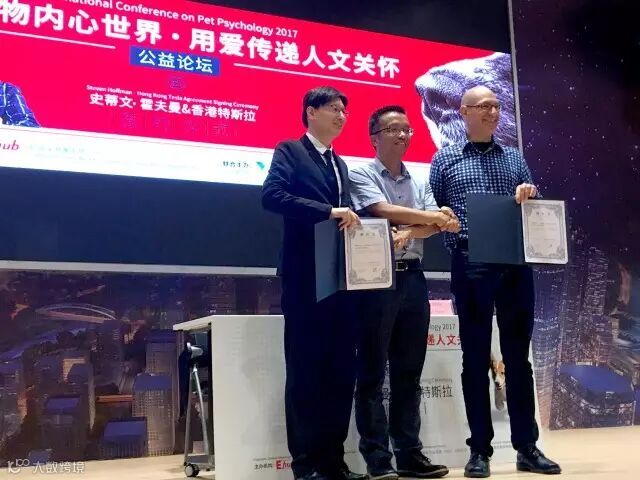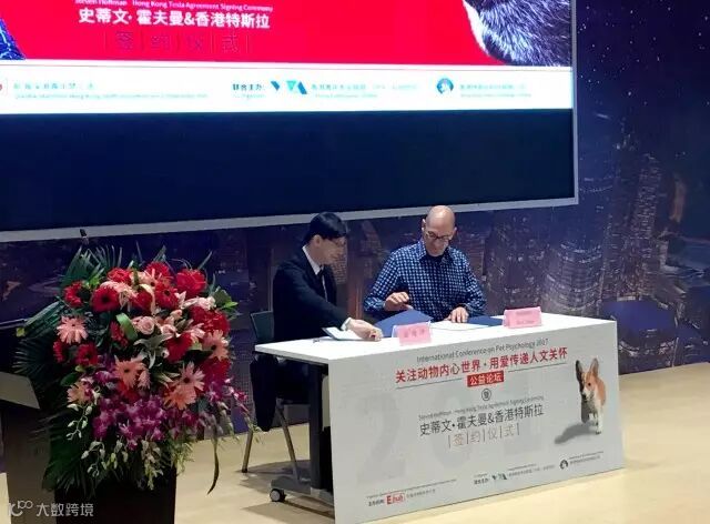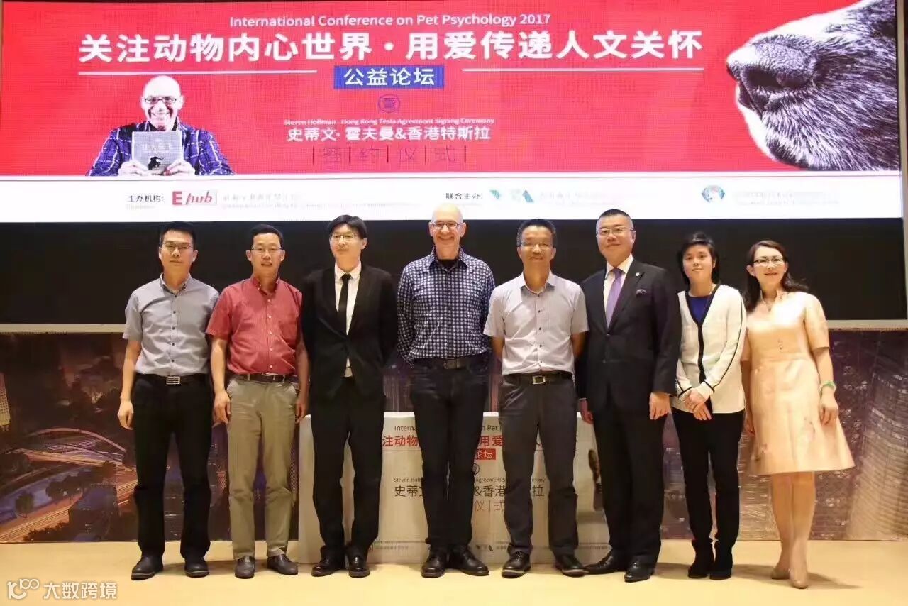 2017年5月31日,由前海深港青年梦工场、香港青年专业联盟众创空间、香港特斯拉科技有限公司联合主办的“关爱动物内心世界,用爱传递人文关怀公益论坛暨史蒂夫.霍夫曼&香港特斯拉签约”活动在前海深港青年梦工场创业学院隆重举行。前海管理局局长助理、前海联控公司董事长张韶辉先生、香港青年专业联盟召集人吴杰庄先生、全美排名第一孵化器Founders Space創始人、硅谷孵化器主席史蒂夫.霍夫曼先生出席了本次活动。