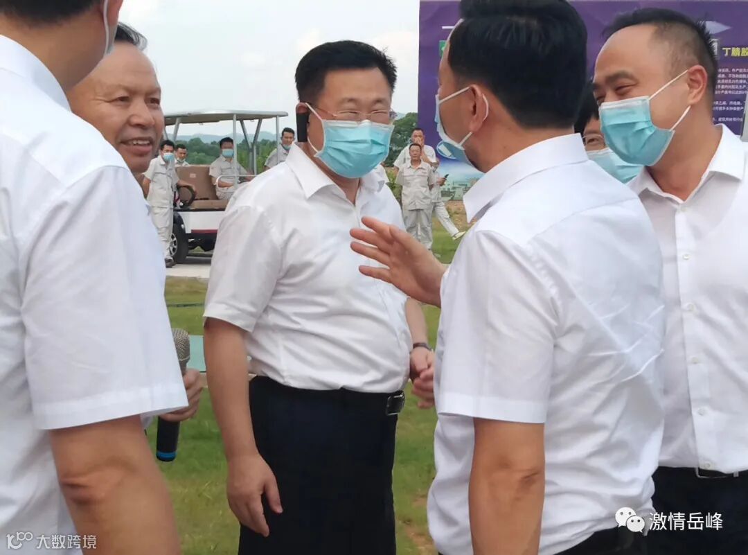 2022年7月16日下午,一群中巴车队缓缓驶入岳峰集团环保新材料基地,这是萍乡市委市政府组织对全市重点发展项目企业进行的一次大型观摩考察活动。萍乡市委书记陈敏、市长刘烁在湘东区委书记区长等领导的陪同下亲临项目现场。江西岳峰集团董事长田岳南率公司团队热烈迎接。