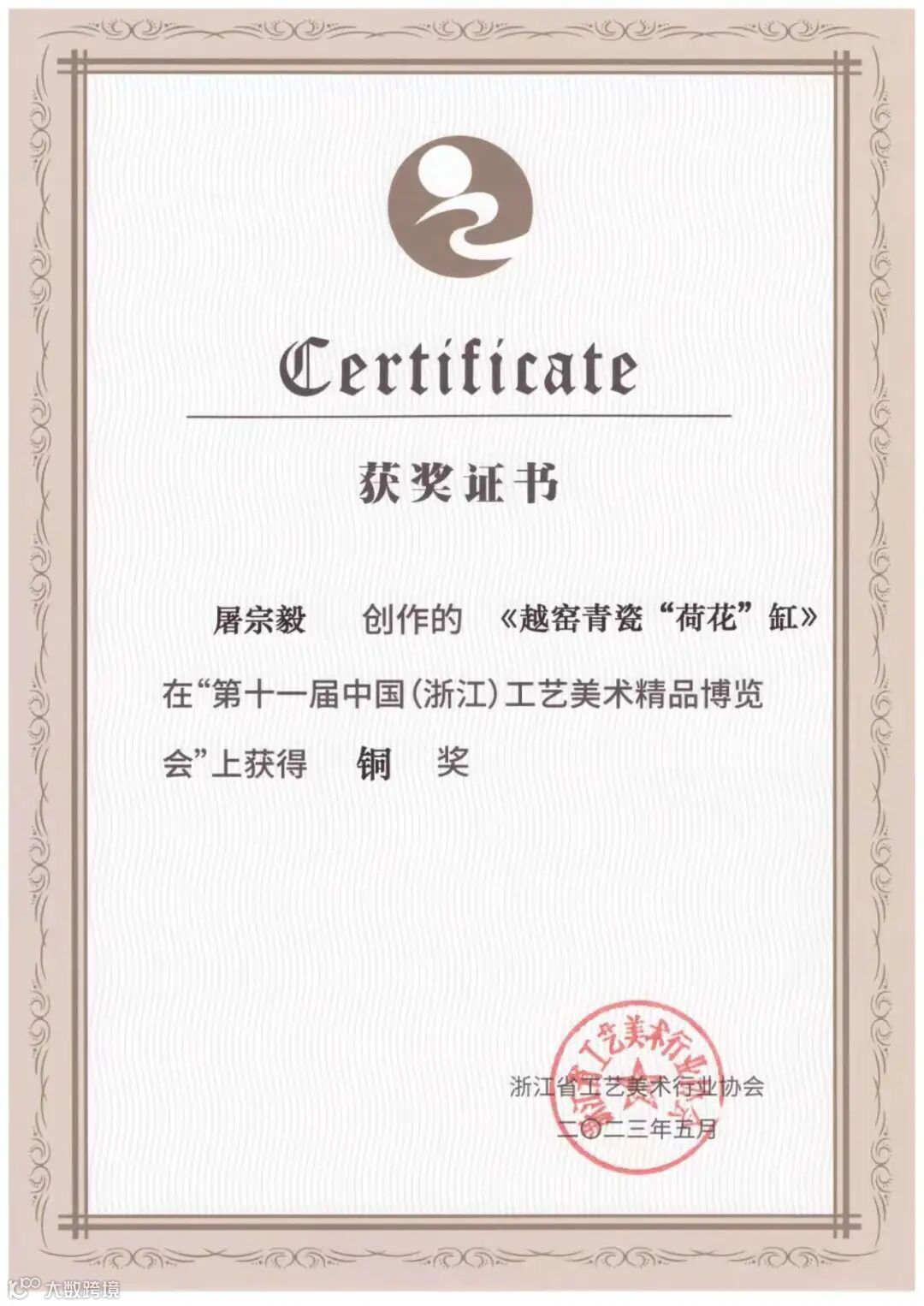 在“兰花奖”暨第六届绍兴市工艺美术精品展上获得铜奖
