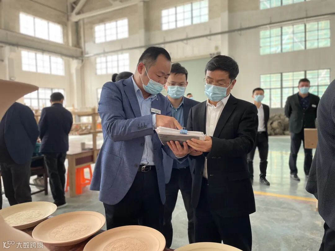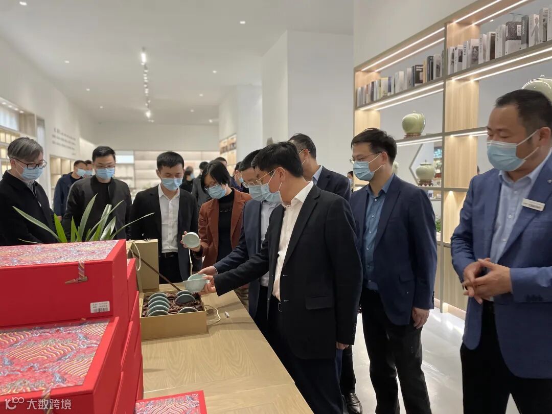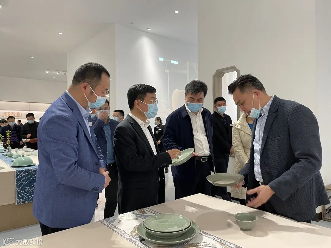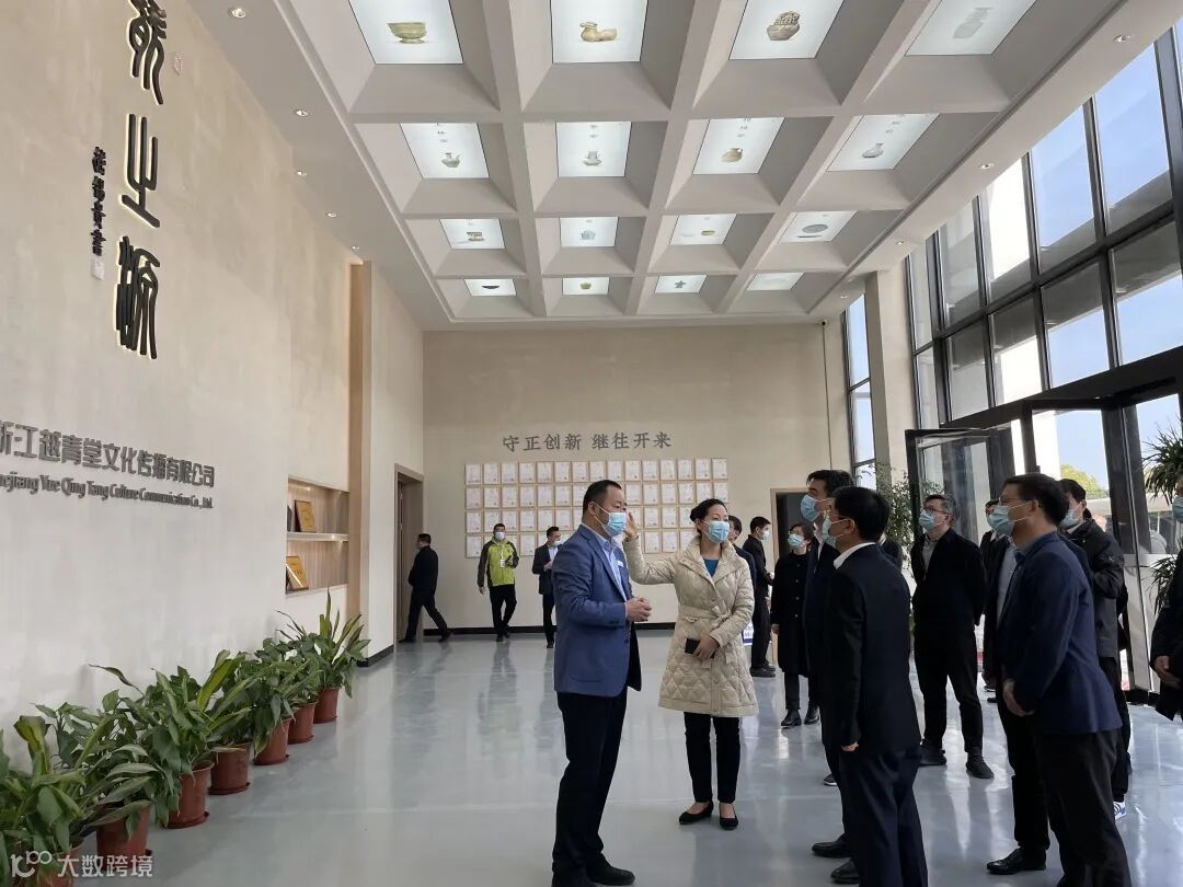 越青堂总经理罗洪良向施市长介绍了越窑青瓷的来世今生、开枝散叶、研学基地、观光工厂及文创的作品和产品,并对施市长关心的人才引进与培养、传承与创新、原材料的问题、宋韵文化在越窑上的体现等问题做了回答。