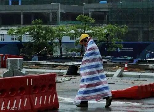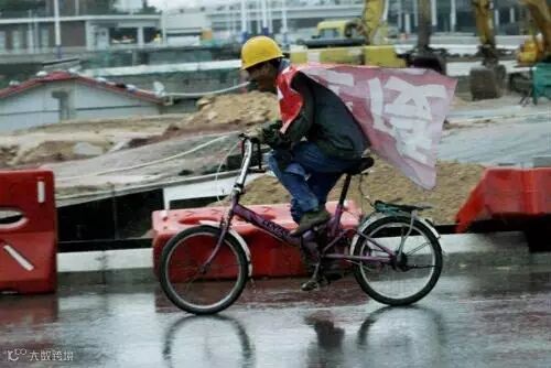 导语:在自贸区成立两周年之际,笔者来到正在火热建设中的工地上,用手中的镜头拍摄记录了大雨中,身穿各式自制雨衣避雨的工人们。