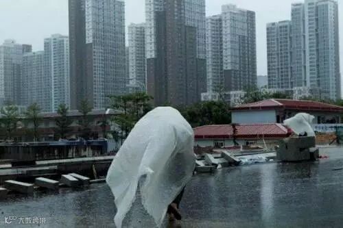 就这样,原本是用来遮盖杂料的塑料、纸盒、木板等物品被临时改制成了雨伞、雨衣用来躲避这场大雨,大家都各想招数,尽量避免在回到宿舍前衣服被大雨浇湿。