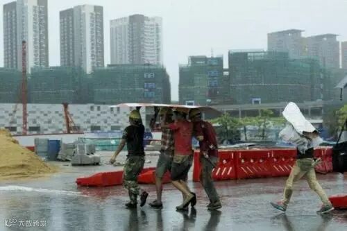 由于大雨持续,为了确保施工安全,刚刚上班的工人们被临时通知放假休息。