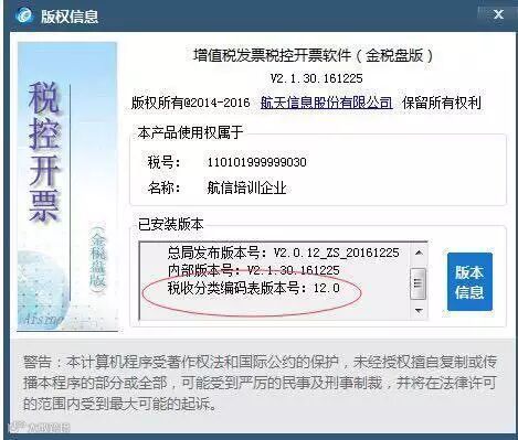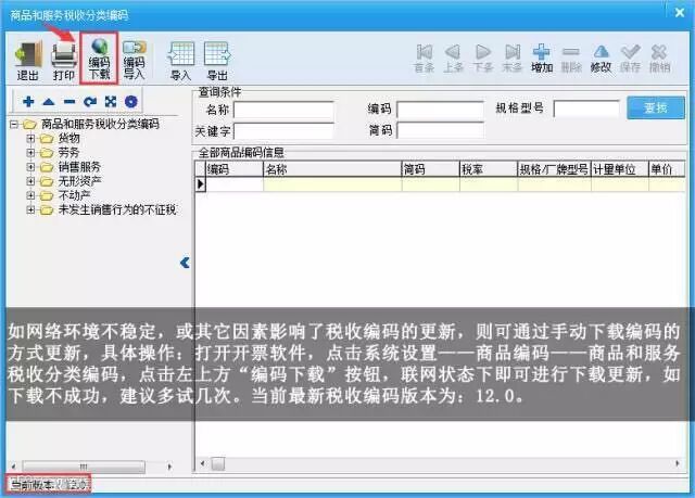 编码和开票软件一样,都需要使用最新版本的,开票软件要及时升级、编码也需要及时升级,目前税收编码的版本是12.0。 金税盘版编码版本号,