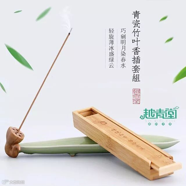 (竹叶香插套组:香,其味芬芳,怡养性情,净化心灵,配以莲藕装饰的插孔,更如君子般的品格,去污除垢,心净高尚。)