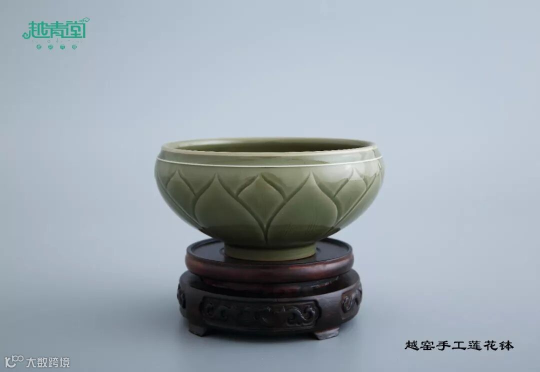 (越窑手工莲花钵:此钵,越窑工艺制作,技法细腻,釉法自然,莲花作为佛花装饰于外形,更添圣洁、自然。)