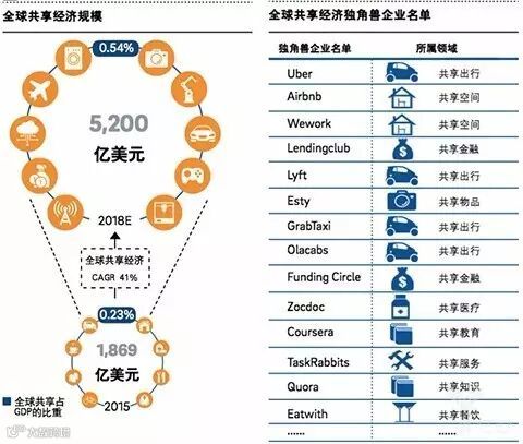 全球共享经济规模&独角兽企业名单