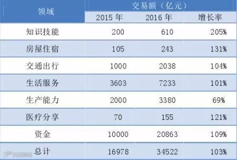 根据国家信息中心分享经济研究中心发布的《中国分享经济发展报告2017》,2016年中国分享经济市场交易额约为34520亿元,比上年增长103%。到“十三五”期末,共享经济在中国GDP中的占比将会超过10%。