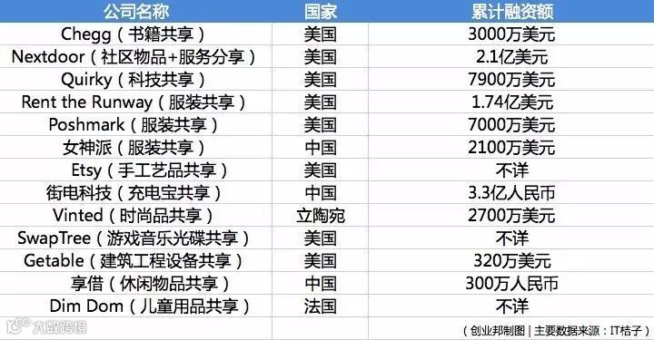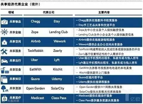 在国外做得较好的如:共享车Uber,共享空间Airbnb,技能分享Taskrabbit,共享资金价值Zopa(全球第一家P2P网贷公司)等等。